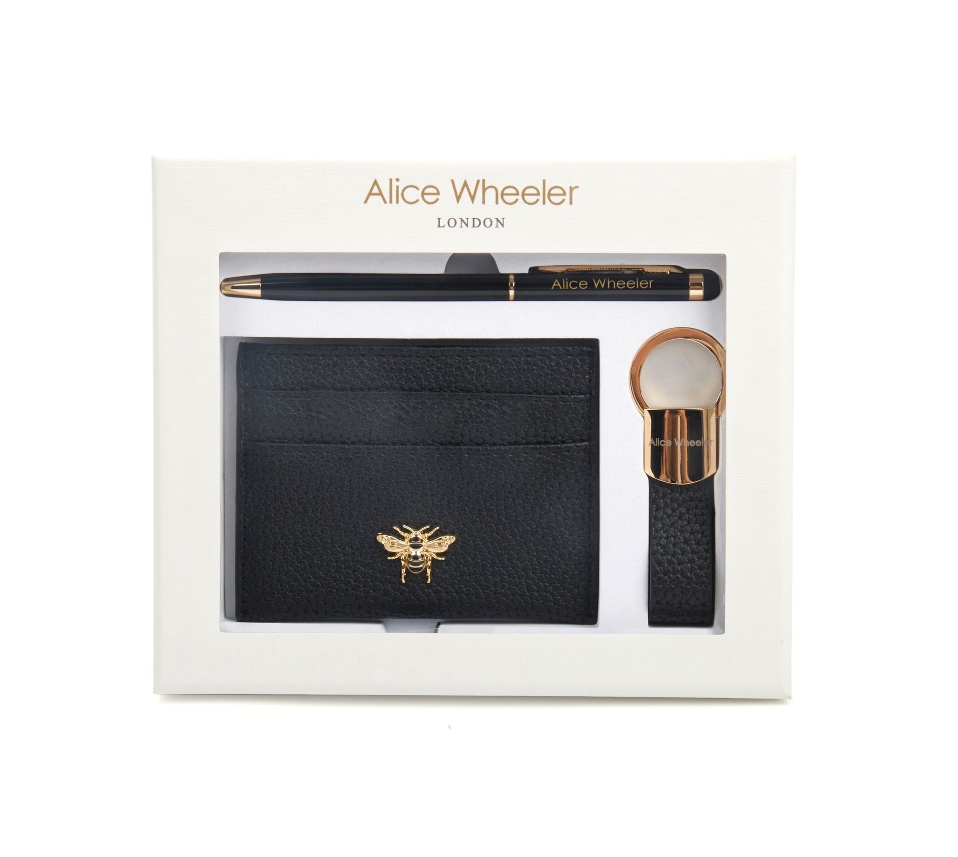 The perfect gift for someone special. Featuring the Bow Card holder, the new loop keyring and and a stylish Alice Wheeler pen.
