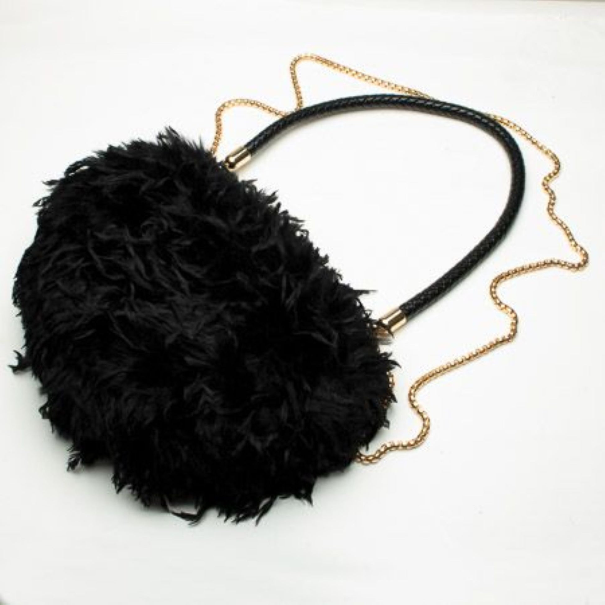 Faux Ostrich Feather bag with interchangeable chain and leather straps