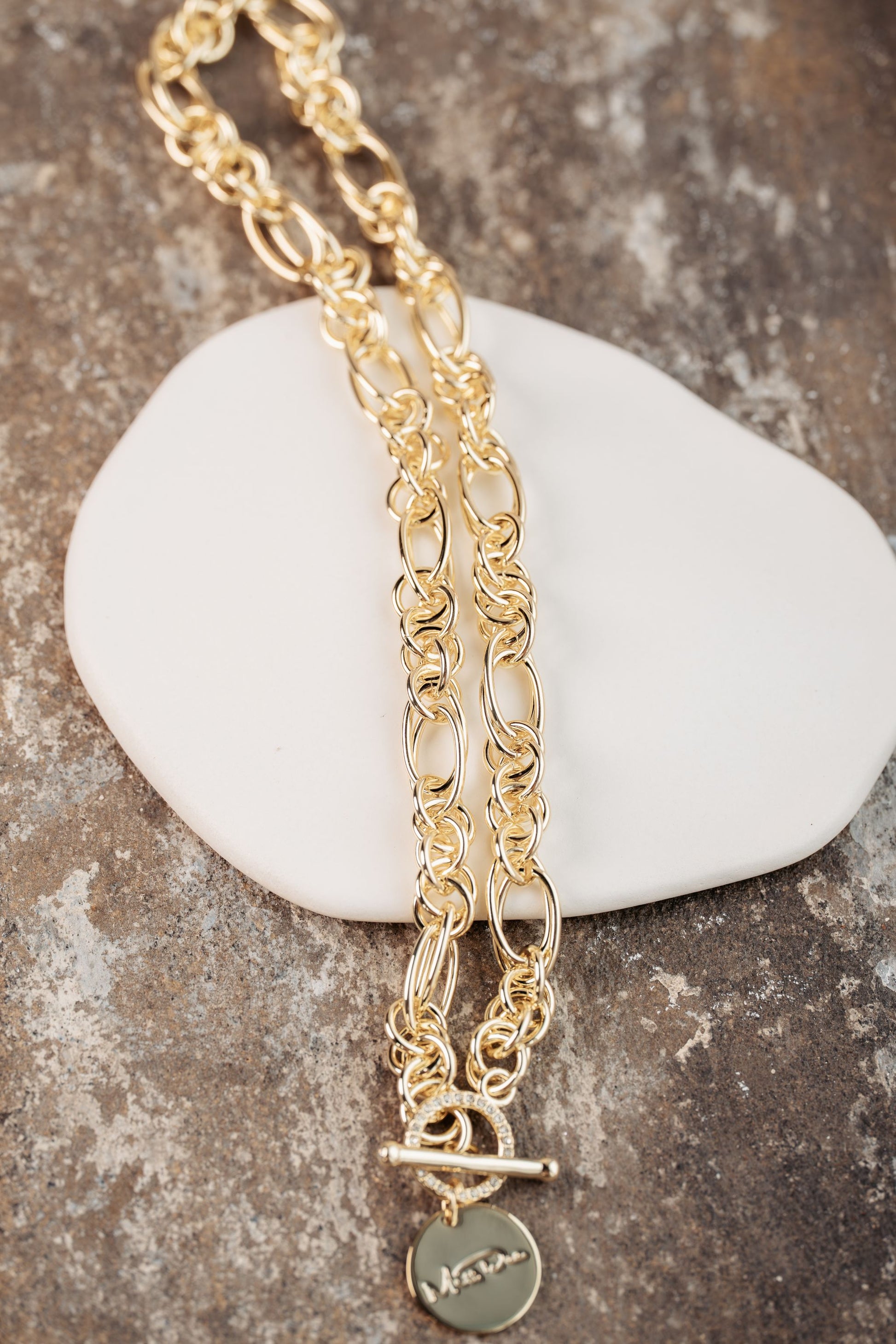 Miss Dee Short Cubic Zirconia T-Bar Necklace in Gold - 1900468