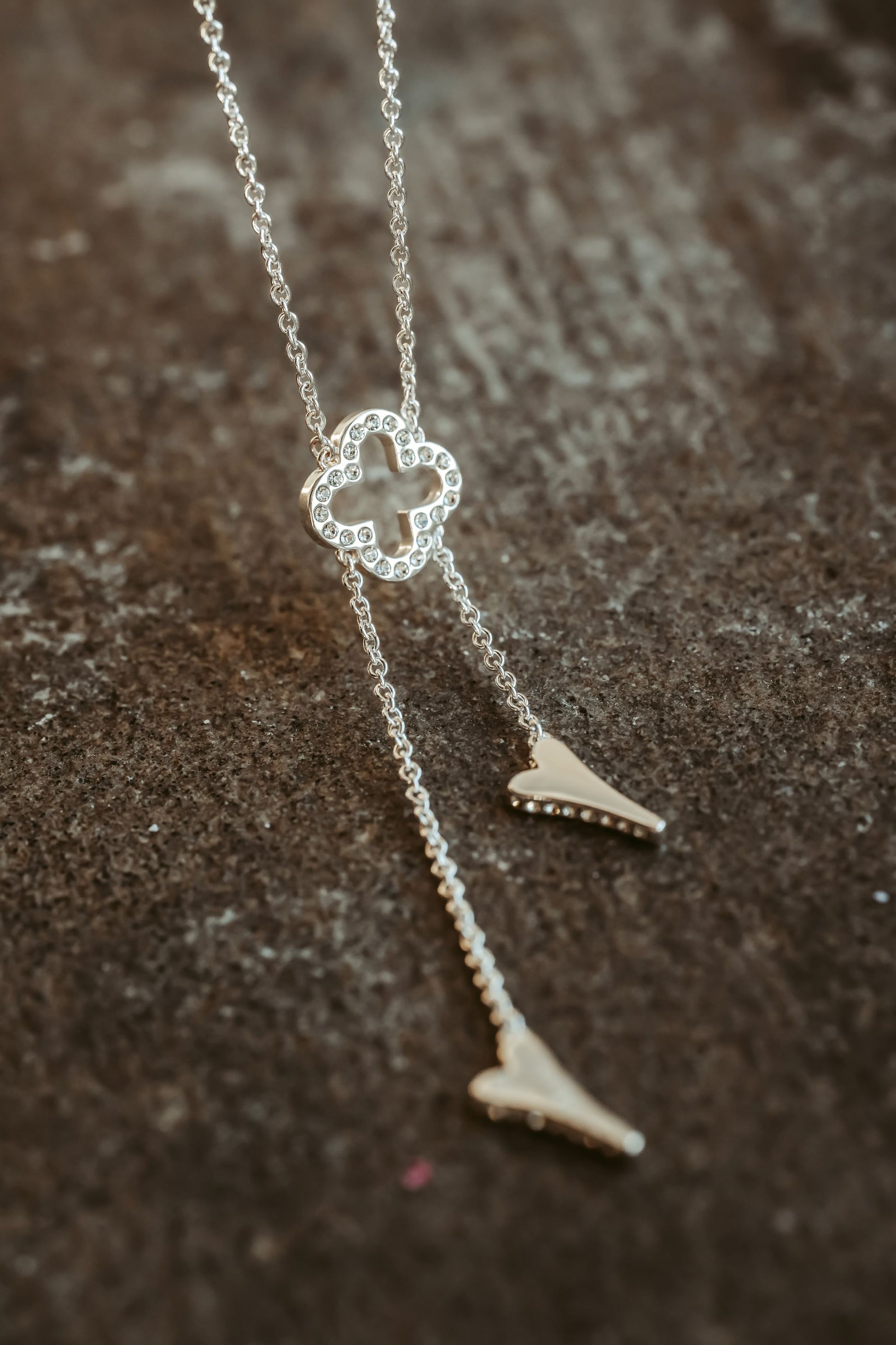 Miss Dee Silver Mid Length Cubic Zirconia Clover Necklace with Small Hearts - 1900230