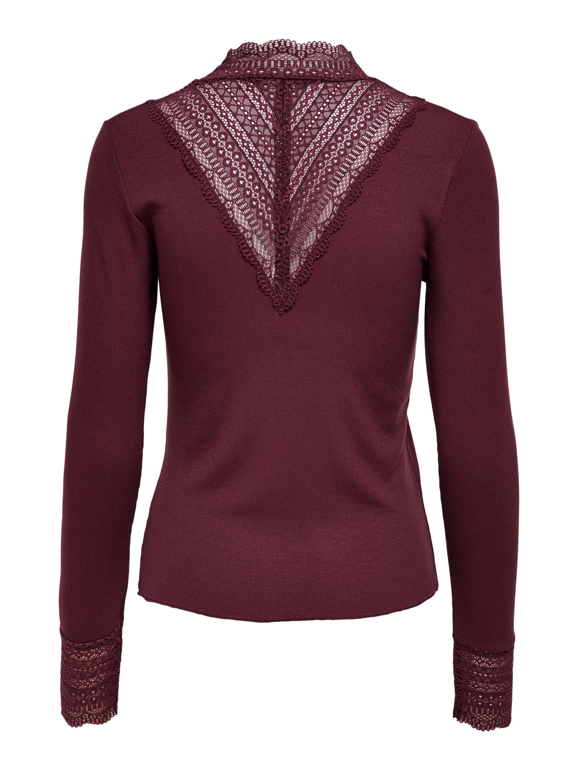 ONLY Long Sleeve Lace Top in Burgundy (Port Royale)